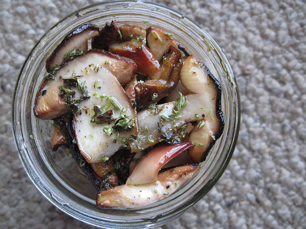 V olje vložene gobe uporabimo za pice, testenine, rižote ter kot prilogo k mesu ali drugim jedem. Najprej jih prevremo v mešanici kisa, vode in začimb, kot je opisano zgoraj. Nato jih dobro odcedimo, zložimo v kozarce in zalijemo z oljem. Na kozarce položimo pokrovčke, a jih ne zapremo do konca. Postavimo jih v pečico in jih še za nekaj minut segrevamo, vendar pazimo, da vsebina ne zavre. Pokrovčke zatesnimo in kozarce počasi ohlajamo. Uporabimo jih v pol leta.
